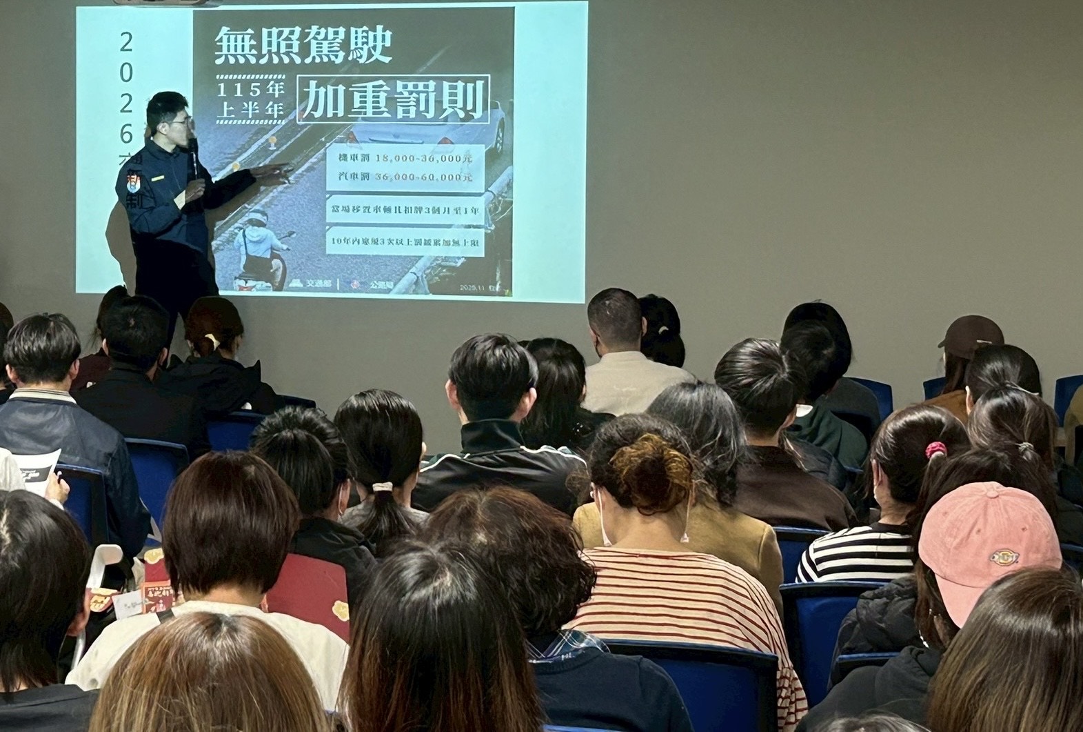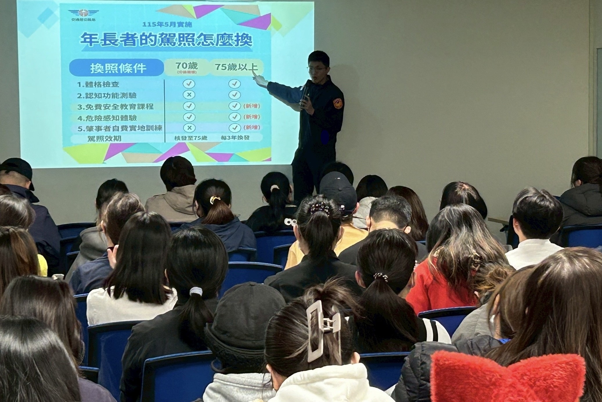 因應多項交通新制於2026年上路,包含無照駕駛罰則加重、高齡換照年齡下修、駕照考試新制,為提升港區用路人安全,本總隊運用三井賣場於115年1月8日下午舉行店長會議之時機,派員前往宣導,並結合港區特性,以交通事故案例,強化三井員工交通安全觀念。